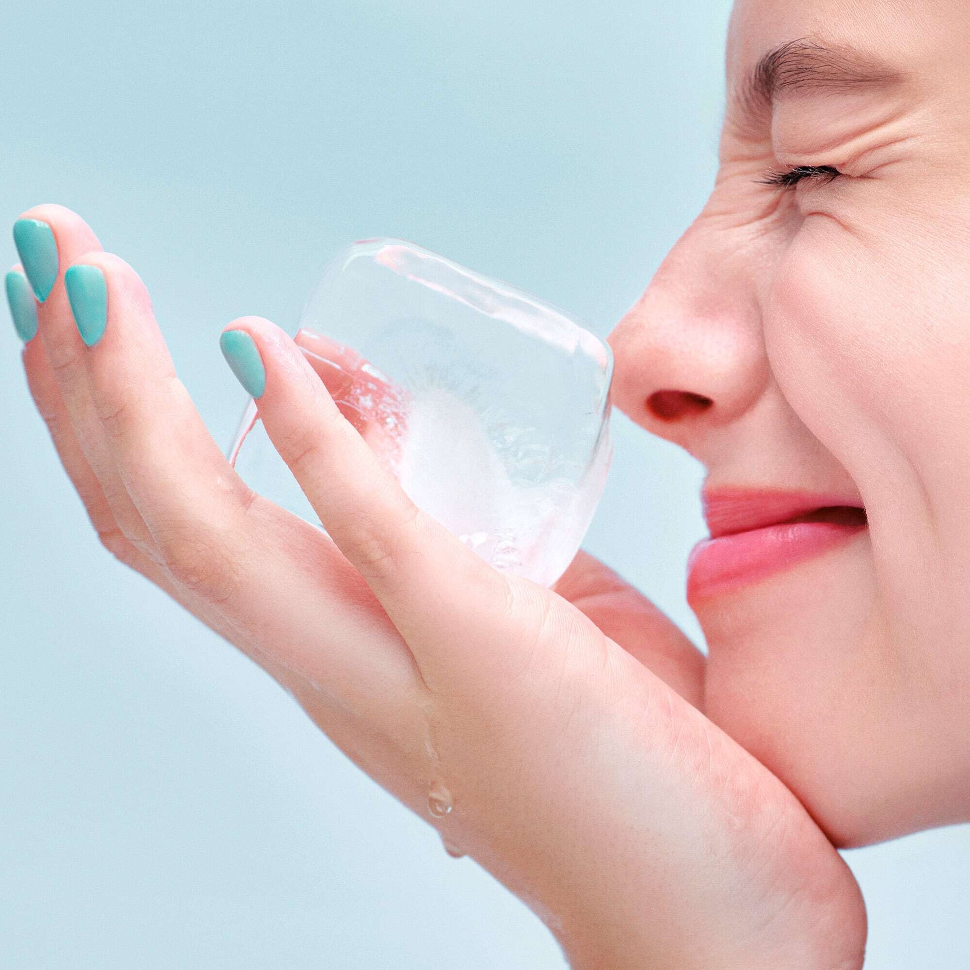 مياه الأنهار الجليدية بتركيز 100,000 جزء في المليون تبرد البشرة على الفور، وتعزز امتصاص حمض الهيالورونيك.