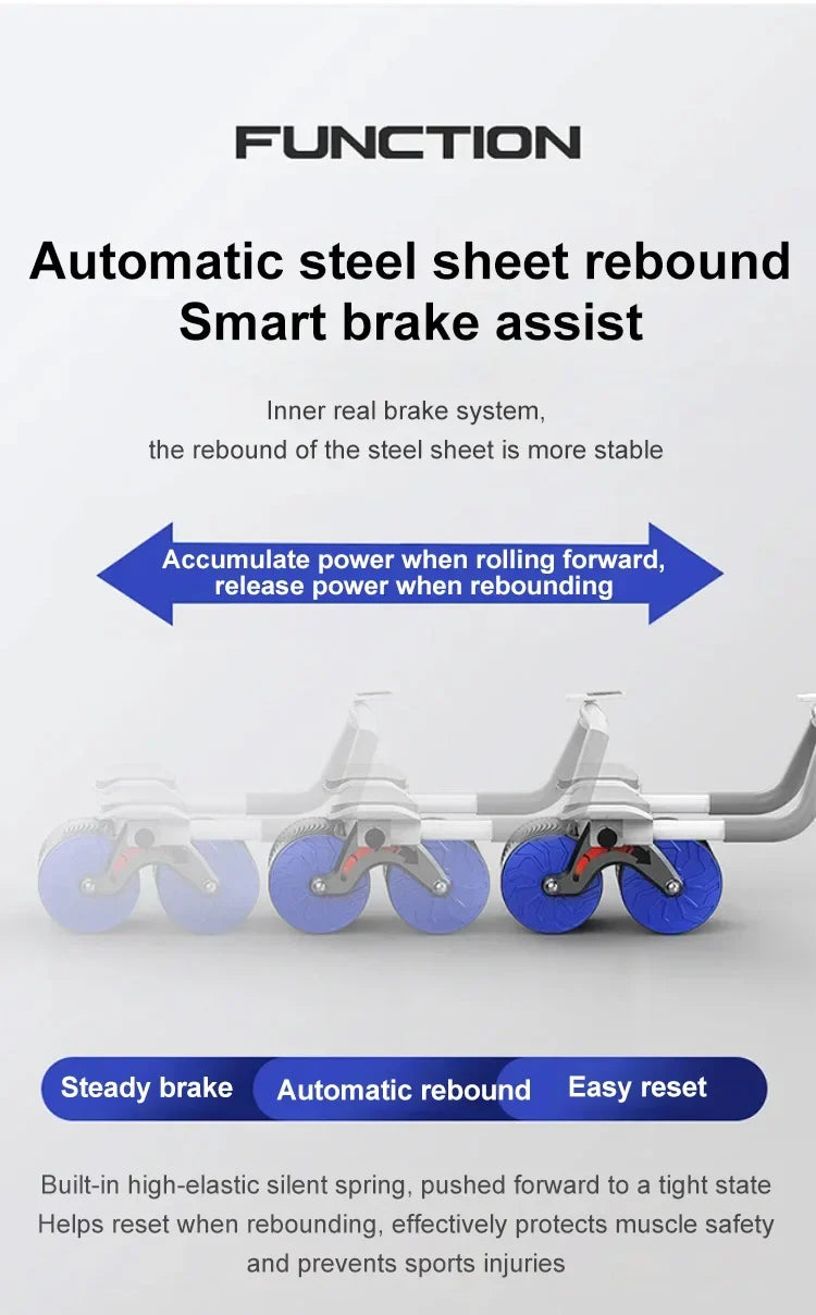 Our ab roller features intelligent auxiliary brakes and a built-in brake system for smoother, more controlled steel rebound.