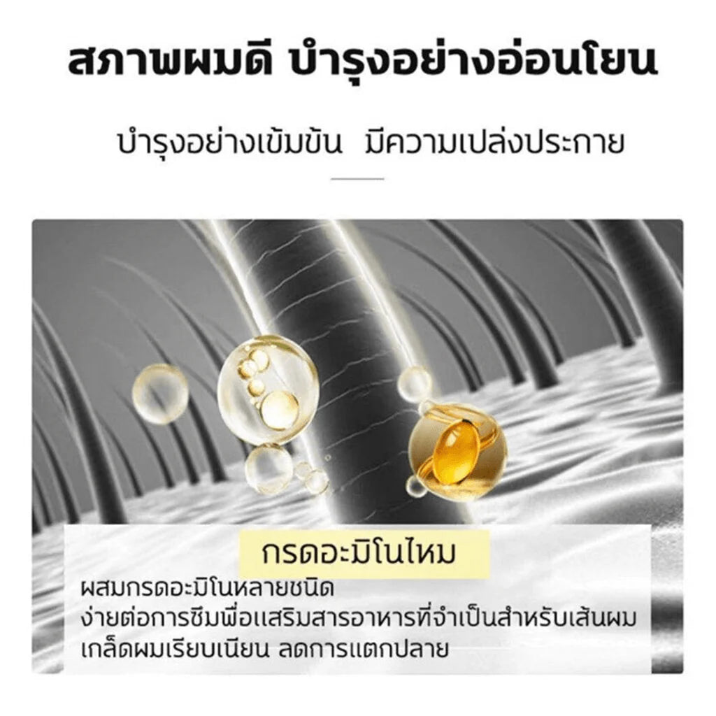 Restores damaged hair from coloring, straightening and perming. Helps restore dry, damaged hair that is brittle, easily broken, lacks weight, frizzy from straightening, perming and coloring to return it to being soft, smooth, shiny, lively. Hair color lasts longer and is easy to style with a combination of the value of keratin complex, argan oil and Korean ginseng that helps deeply nourish and pull the innermost layer of the hair to coat and close the outermost hair cuticles, making it look shiny and lively.